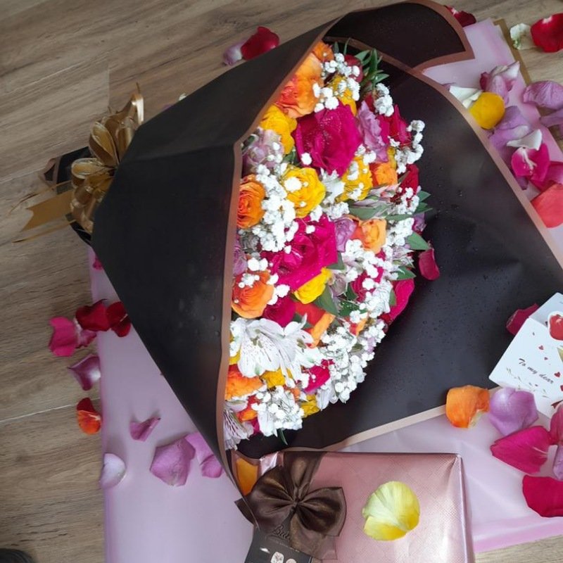Be the first to review “Bright Yellow, Red, Hot Pink, Bright Orange Roses”